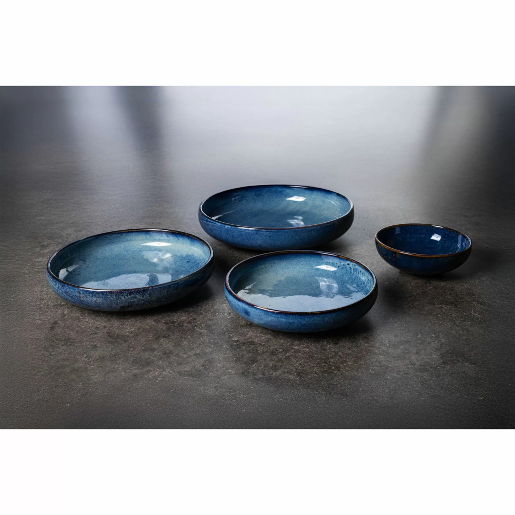 A színek és komponensek ügyes alkalmazása a reakcióképes máz felhordása és égetése során biztosítja, hogy minden darab összhangban legyen a többi elemmel, így harmonikusan egészítik ki egymást. A végeredmény kézműves jellegű hatást kelt, egyedi kompozíciókat létrehozva, amelyek feldobják az asztalokat modern otthonokban és éttermekben egyaránt.