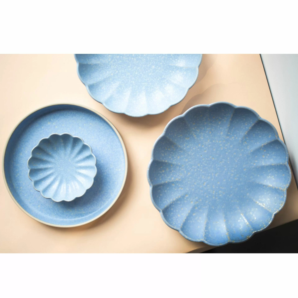 Ez a porcelánkollekció a legmagasabb minőséggel és nyers, természetes felülettel rendelkezik, amely tökéletes harmóniát alkot a tálak kékes árnyalataival. Az egyedülálló hatás a sima máz és a matt, tapintásra éles külső felület kombinálásával érhető el. Továbbá, a mázborítással rendelkező részben szabálytalan bemélyedések találhatók, amelyek kiemelik az esztétikai értékeket. A porcelán megőrzi eredeti színét az edények alján és külső felületein, így különleges karaktert kölcsönözve azoknak.