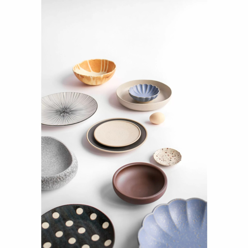 • Nyers és érdes tapintású külső felület a tányérok és tálak alján